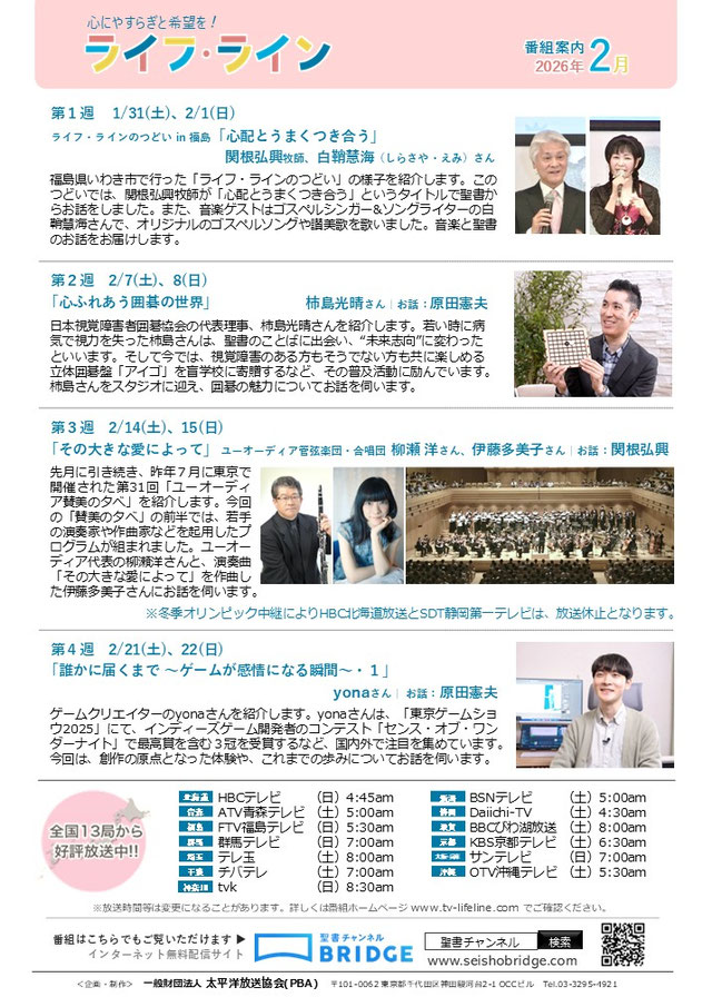 先日(2026年1月24日、 25日)TVライフ・ラインにて、昨年の「第31回 ユーオーディア 賛美の夕べ」の特集が放送されました。番組は⇓こちらからご視聴いただけます。